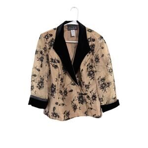 Alex Evenings Formal Blazer Black Floral Tan Size XL Vintage