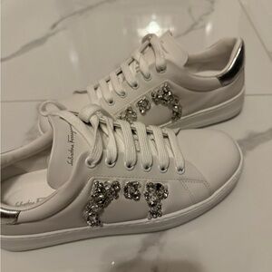 Salvatore Ferragamo white and silver embellishment, brand new, never worn, size