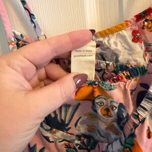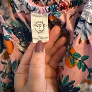 Pale pink cotton dress with pockets. Technically a printfresh nightgown. See pics for how it looks on, the print on the dress for sale is the dog print, the model pics just for how it looks on a body. I wore as a dress with a navy cardigan (and got lots of compliments). It’s super cute (just too big). Great condition.