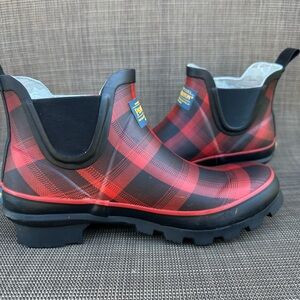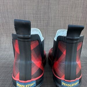 PendletonRain BootsRed Black Plaid Ankle Chelsea Rubber Waterproof Booties Sz 7