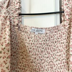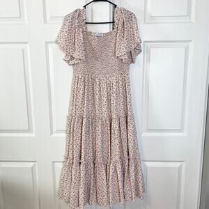 Ivy City Co Sweet Posie Smocked Floral Flutter Sleeve Tiered Midi Dress Large