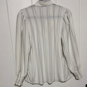 Ann Taylor Cream Striped Blouse with Bow