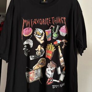 Bold pink and black tee with unique design. Ideal for everyday style.
