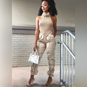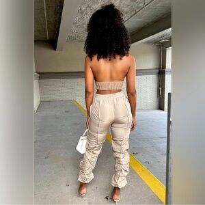 Introducing our stylish Ruched Parachute Pants, designed for the modern woman who values both comfort and fashion. These olive green pants feature a unique ruched detailing that adds a touch of sophistication and flair to any outfit. Crafted from lightweight, breathable fabric, they provide ease of movement while maintaining a chic silhouette. The elastic waistband ensures a perfect fit, making them ideal for both casual outings and more polished occasions. Pair these versatile pants with a fitted top or a flowing blouse to create a look that effortlessly transitions from day to night. Elevate your wardrobe with these must-have pants that combine practicality with contemporary