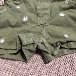 Stylish olive green dungaree shorts for kids. Perfect for playful days.
