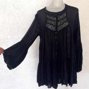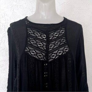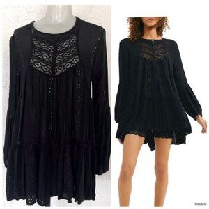 Free People Kiss Kiss Lace Inset Long Sleeve A-line Tunic dress in Black XSmall