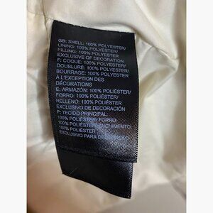 The North Face Color Block White with Black Ladies Insulated Jacket is a stylish and lightweight option for women looking for winter and fall outerwear. Made with polyester lining and insulation materials, this jacket is perfect for casual occasions with its regular fit and outdoor design. The North Face logo accent adds a touch of brand appeal to this machine washable and size large garment. Perfect for staying warm and comfortable in colder weather, this jacket is a versatile and practical choice for outdoor activities.