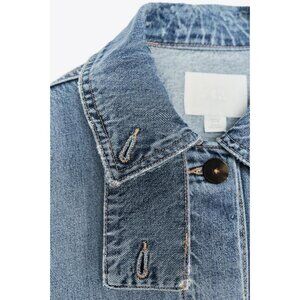 New with tag High neck jacket with tab detail. Long sleeves with tab detail. Side pockets. Pleat detail on the back. Front fastening with hidden buttons and placket. BLUE | 4365/271/400 OUTER SHELL 100% cotton Which contains at least: OUTER SHELL 20% RCS certified recycled cotton 60% OCS certified organically grown cotton