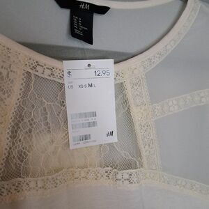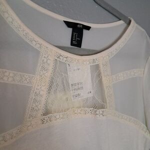 H&M Women's Off-White T-Shirt. Features Lace and Sheer. Size Medium. NWT.