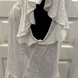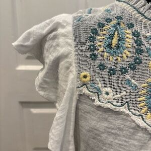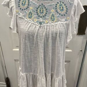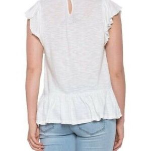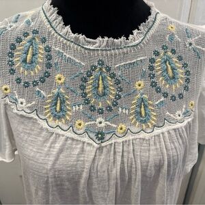 Lucky Brand Women's Embroidered Yoke Ruffled Short Sleeve Shirt Size S Rn#80318