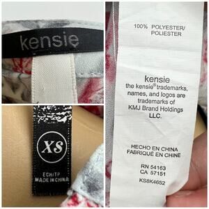 Kensie XS Gray Red Rose Floral Short Sleeve Tee Shirt T-Shirt Womens V Neck