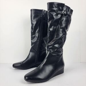 Dr. Scholls Prairie Boots Knee High Faux Leather Riding Black Size 9M