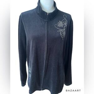 Lawrence Kazar Jacket Women’s Size Medium Black With Beading Long Sleeve Open Fr