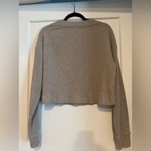 The Muse V-Neck Pullover is made with a soft ribbed knit and has a relaxed, cropped silhouette.