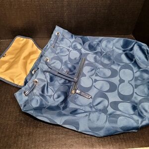 Elegant Coach Signature C's backpack with teal monogram pattern. #E1457-F30781. Features a front zip pocket