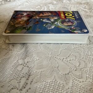 The product is Walt Disney's Toy Story VHS released in 1996, featuring stars like Tim Allen and Tom Hanks, directed by John Lasseter and produced by Pixar. The VHS comes in a clamshell case. This G-rated animated film follows the adventures of Woody, Buzz Lightyear, and other beloved characters in the world of toy storytelling. Perfect for fans of animation and classic Disney movies, this VHS captures the magic and humor of the beloved Toy Story franchise.