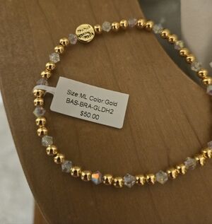 This elegant bracelet features a stunning combination of gold and silver beads, perfect for adding a touch of sophistication to any outfit.