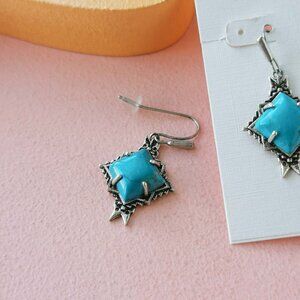 An original icon, back from the archives. Inspired by kilim motifs and traditional Southwestern design, the Cass Vintage Silver Drop Earrings in Variegated Dark Teal Magnesite bring a touch of heritage detail to one of our most beloved looks.