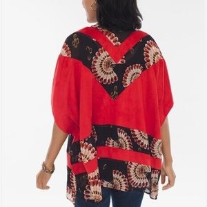 Chico's Mixed Print Runaway Open Front Kimono Red Black Faux Suede S/M