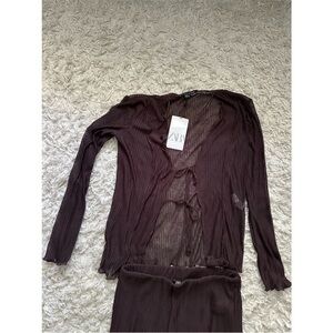 Zara Brown Sheer Pants & Top Set