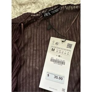 Brown from Zara. Sheer tie top, long sleeve which matching pants. Such a cute set I just haven’t worn it and I have it in black.
