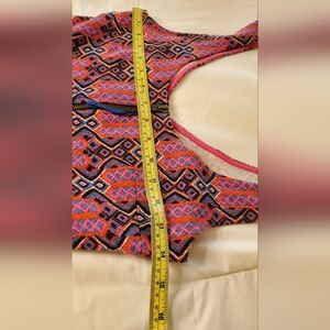 This Maeve sundress showcases a sleeveless design with a flattering v-neckline, perfect for casual or resort wear. The dress features a vibrant pink hue with a geometric pattern, complemented by a flared mini skirt that adds a playful touch. Its lightweight fabric ensures comfort and style for warm weather outings.