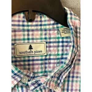 Keywords: Southern Pines, Plaid shirt, Short sleeve shirt, Button up shirt, Mens shirt, XXL shirt, Casual shirt, Cotton shirt, Plaid button down, Men's fashion, Spring shirt, Summer shirt, Checked shirt, Multi color shirt