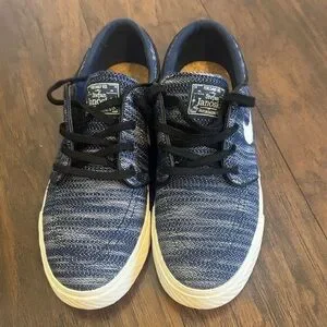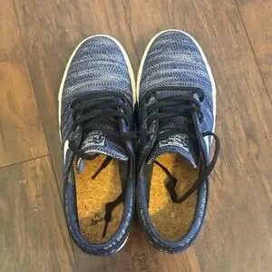 Navy sneakers with a white Nike swoosh. Comfortable and stylish for everyday wear.