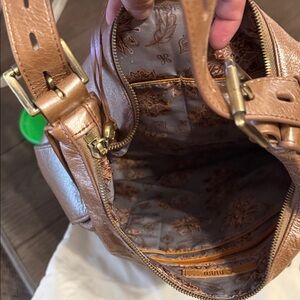 Chic leather hobo bag by HOBO. Soft texture with a stylish design. Ideal for daily use. Rose gold metallic