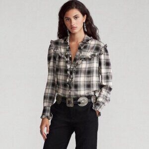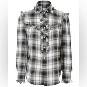 EUC Women's RALPH LAUREN Ruffle-Trimmed Plaid Shirt | Size M
