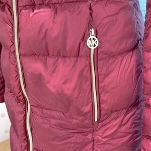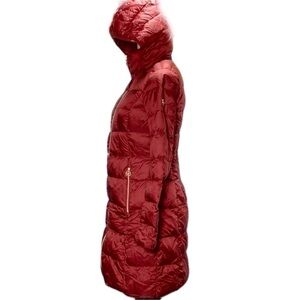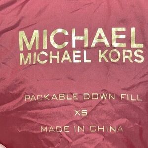 Michael Kors, puffer jacket, quilted coat, down jacket, packable jacket, travel coat, red winter jacket, hooded puffer, women’s outerwear, XS jacket, designer coat, warm lightweight jacket