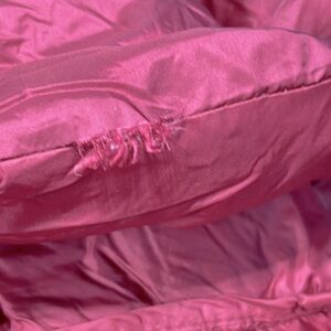 • One lower quilted square has a small tear and missing filling.
