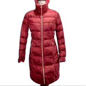 Michael Kors Packable Quilted Down Puffer Jacket Red XS Hooded Lightweight Coat