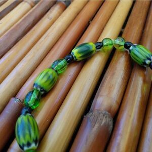 HANDMADE Vibrant Green/Black/Yellow Glass Beaded Bracelet Stretchable