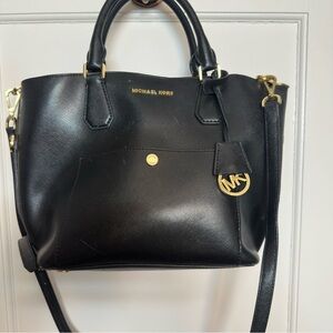 Stylish colorblock polo shirt with button details. Features tan, cream, and navy colors.