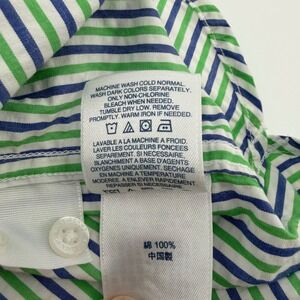 Lands' End XL Mens Striped Short Sleeve Button Down Shirt Green Blue