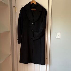Timeless black trench coat with button closure. Elegant and versatile design.