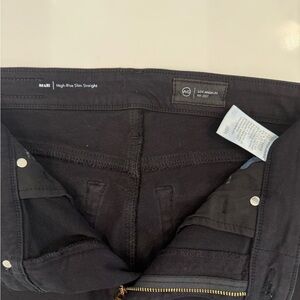 AG Mari High-Rise Slim Straight, opulent black straight leg jeans. Size 28R, Perfect for a sleek look. Ideal for any wardrobe. Never worn. Professionally hemmed to 27” inseam.