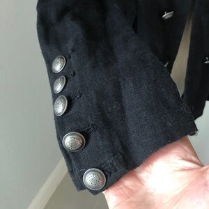 Unlined black blazer with front and sleeves metallic buttons accent