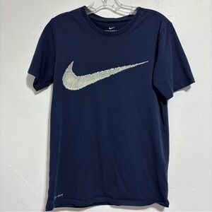 The Nike Tee Athletic Cut Dri Fit Navy Blue T Shirt Short Sleeve Men's Small