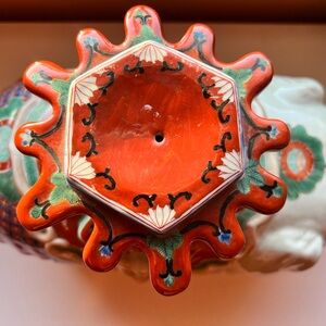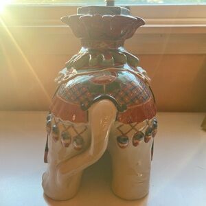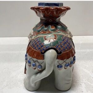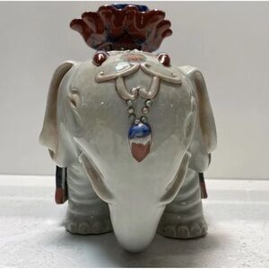 Enhance your home decor with this exquisite ceramic elephant figurine. Featuring a blend of red, blue, and cream colors, this piece adds a touch of elegance to any space. Perfect for art enthusiasts and collectors. The kakiemon-style elephant carrying a pagoda on its back, with polychrome enamel decoration. For a similar elephant see;