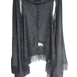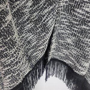Jessica Simpson Black White Marl Fringe-Hem Vest Open Front Boho