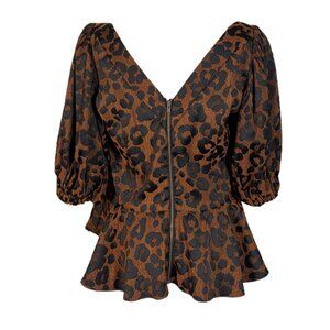 Autumn Adeigbo Cheetah Josephine Peplum Top Size 12