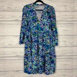 Lilly Pulitzer Aliana 3/4 Sleeve Blue Grotto Dress Twilight Tropics Size XL. In excellent preowned condition.