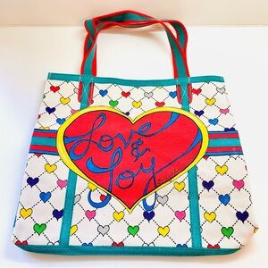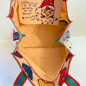 Brighton Love & Joy Canvas Tote Bag Christmas Elf Hearts Shoulder Handbag