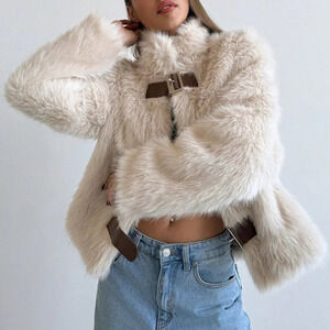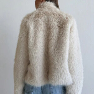 Apricot Casual Women's Stand Collar Fitted Long Sleeve Fluffy Button Jacket