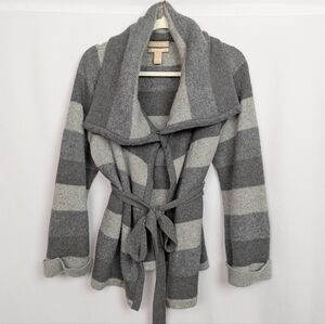 Eileen Fisher SP Sweater Gray Cardigan Full Zip Merino Wool Windowpane Stripes