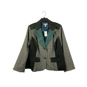 CJ Banks Women's Emerald Essence Plaid Blazer