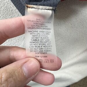 Materials: Shell 93% Nylon, 7% Spandex; Trim 62% Polyester, 33% Nylon, 5% Spandex