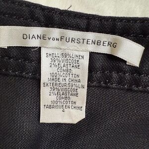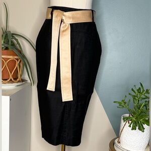 Diane von Furstenberg Black Linen Stretch Pencil Skirt w/ Contrast Belt Size 4